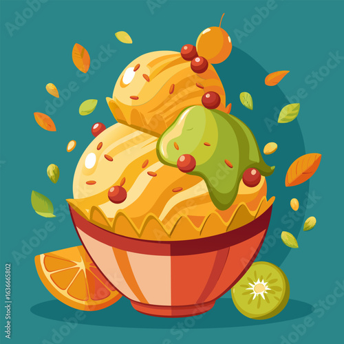 Sklenice chutného míchaného ovocného smoothie, vektorové papírové ilustrace. Zdravý Letní ovocný nápoj z kiwi, pomeranče, jablka. Potraviny bohaté na vitamíny a minerály.