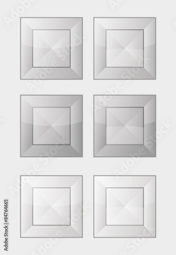 Skleněné průhledné rámečky různých velikostí a formátů s prázdným prostorem izolované sady. Nástěnný vývěsní štít s průhledností efekt vektorové ilustrace