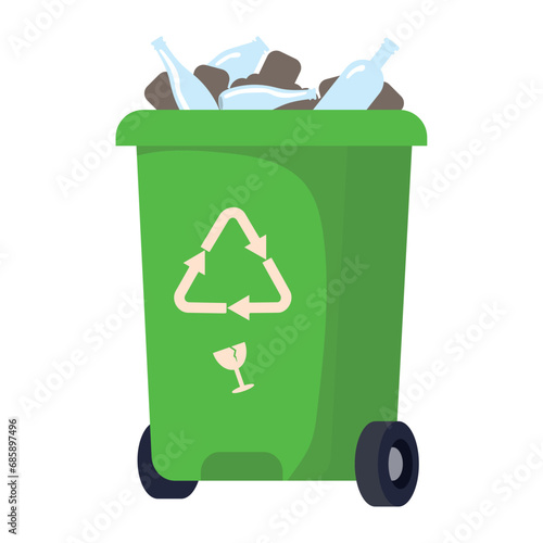 Skleněný odpad recyklovat odpadkový koš vektor. Izometrické zelené odpadky třídění odpadků může ikona izolovaných na bílém pozadí