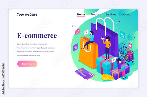 Globální obchodní koncept. Mezinárodní komunikace, obchodní tým, satelitní síť. Vektor web design šablony. Vstupní stránka webové stránky ilustrace