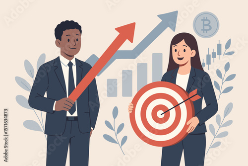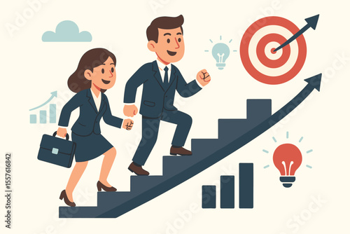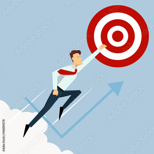 Koncepce dosažení cíle. Motivační koncept k úspěchu v podnikání a životě. Vektorová ilustrace v plochém provedení.