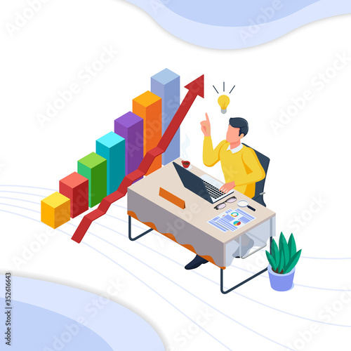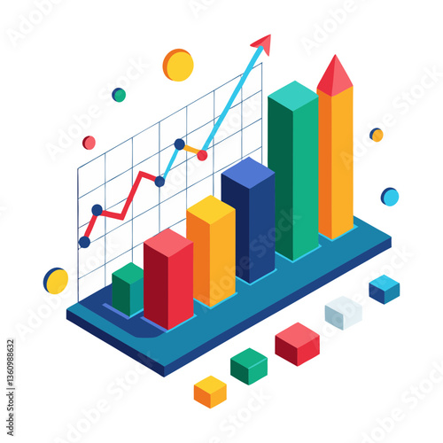 Zlaté ingoty, rostoucí grafy, ploché vektorové izometrické ilustrace. Ceny zlata rostou.