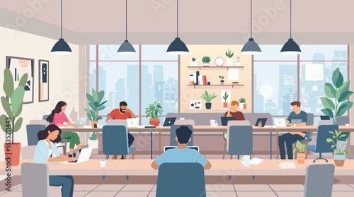 Vektorová ilustrace interiéru luxusní restaurace, číšníků a lidí na večeři, oběd nebo večeři. Dobrý designový prvek konceptu restaurace v plochém stylu.