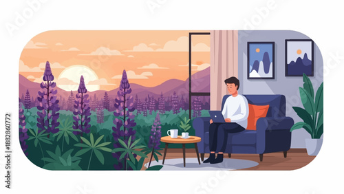 Dobrý spánek, plochá vektorová ilustrace. Aromaterapie, meditace, relaxace, bylinný čaj před spaním, oční maska. Jak získat zdravý spánek koncept.