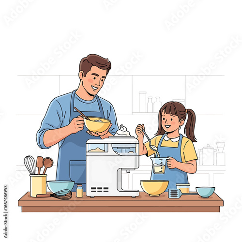 Dědeček vaření s vnukem pečení cookies společně vektorové ikony izolovaných na bílém pozadí