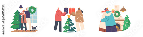 Dědeček dává dárek vnučce vektorové ikony izolovaných na bílém pozadí