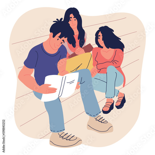 Vnučka čtení babičce vektorové ikony izolovaných na bílém pozadí
