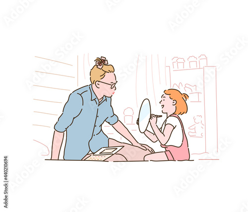 Babička si hraje s vnučkou vektorové ikony izolovaných na bílém pozadí