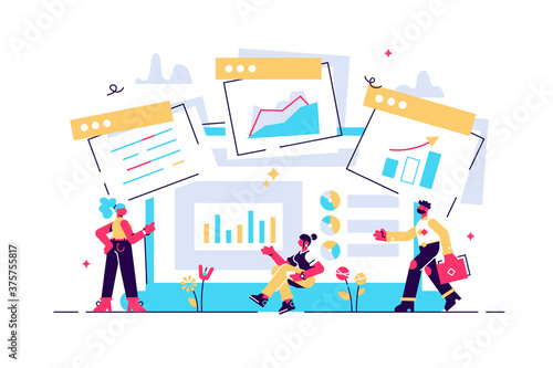 Grafický designér a ilustrátor tým, vektorové ploché izolované ilustrace. Umělecké profesionály pomocí různých softwarových nástrojů pro grafický design k vytváření uměleckých děl štětec, Tužka, Pravítko, vzorník barev atd.