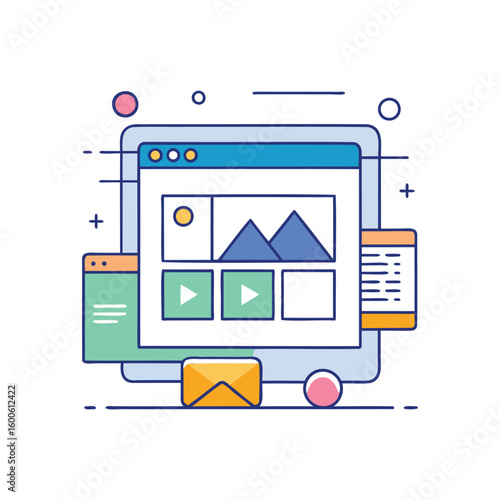 Grafický design vektor. Web art abstraktní ilustrace. Software pro kreativní kreslení plakátu. Návrhářská aplikace pro tvorbu a prototypování webových stránek. Computer technology designing editor