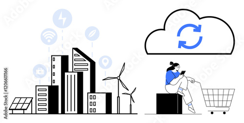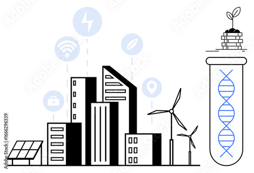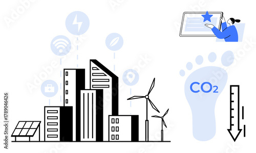 Zelené město s vektorovým logem Eco house building paint service. Válečkový štětec v malířské ruční barvě městského domu. Rekonstrukce města, restaurování. Ekologická čtvrť s komfortním bytem pro bydlení