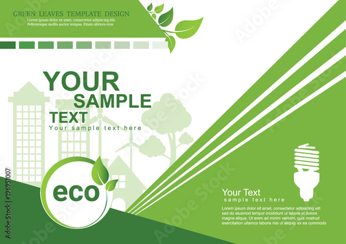 Zelený list s elektrickým autem, siluety městských budov, vektorové ilustrace v papírovém uměleckém stylu. Ekologické město, koncept ekologické dopravy.