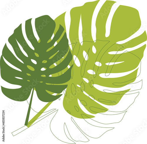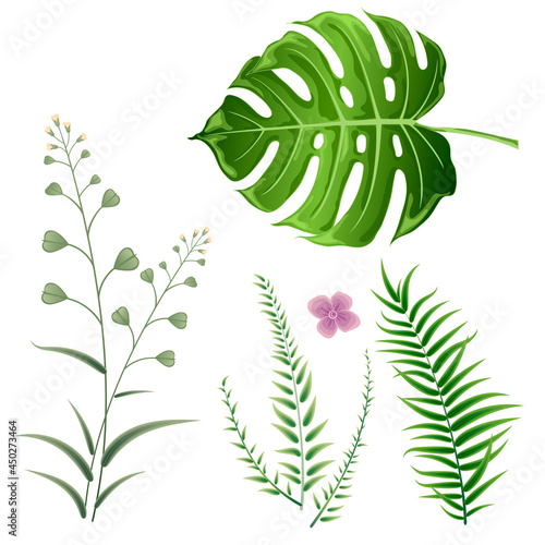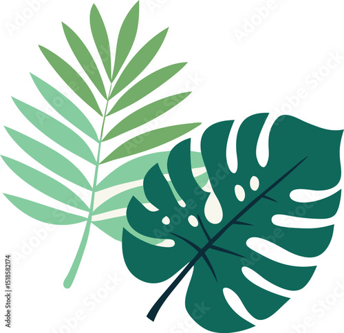 Zelené tropické listy vektorové ikony izolovaných na bílém pozadí.