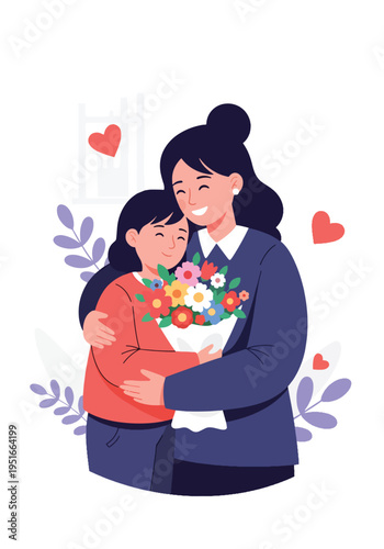 Skupina žen různých národností, feministky objímající se, plochá vektorová ilustrace. Feminismus, rozmanitost, posílení postavení žen, rovnost Ras, přátelství, mezinárodní solidarita.