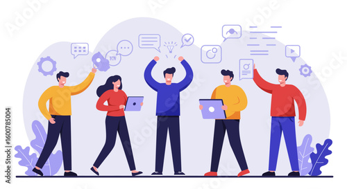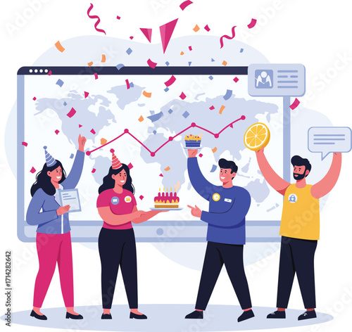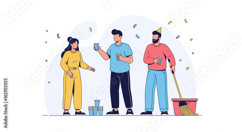 Skupina šťastných přátel klubů společně na dovolenou party vektorové ilustrace. Postavy mladých mužů a žen pijí koktejly a mluví s radostí sdílení zábavné nálady