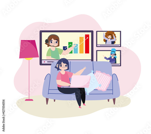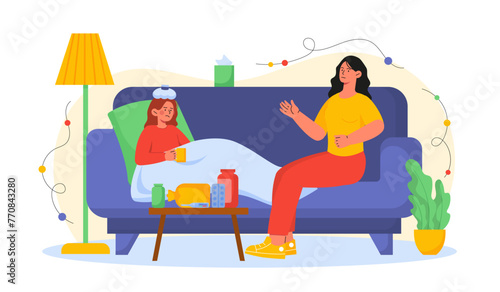 Skupina lidí slaví firemní večírek s dortem, pizza, víno, vektorové ploché ilustrace. Oslava narozenin s přáteli. Šťastné svátky.