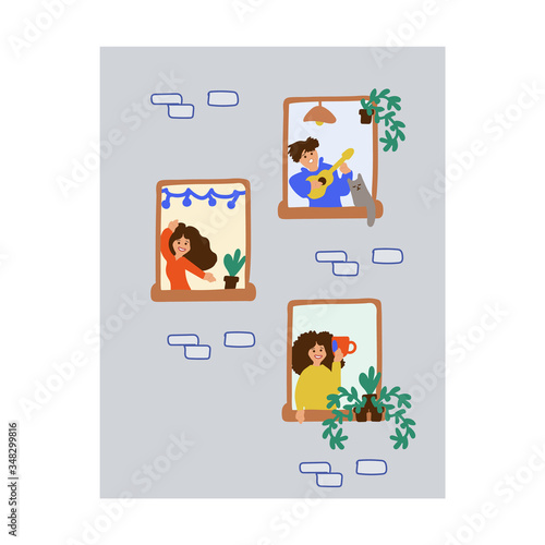 Skupinový videohovor chat s přáteli. Technologie videokonference. Obrazovky mobilních aplikací. Šablona vektorového banneru pro vývoj webových stránek a mobilních zařízení. Webové stránky a UI design ilustrace.