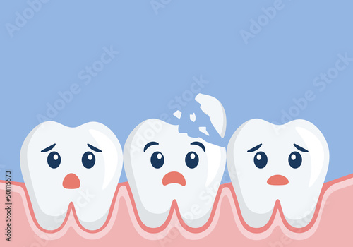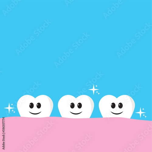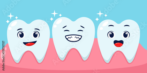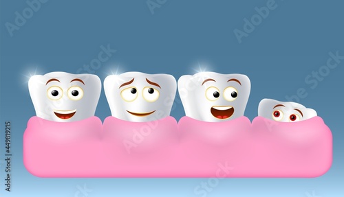Vyrůstat nový zub charakter při pohledu na usmívající se bílé zuby, vektorové ilustrace. Dětská stomatologie, zubní zdraví, ústní hygiena.