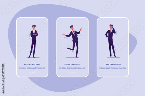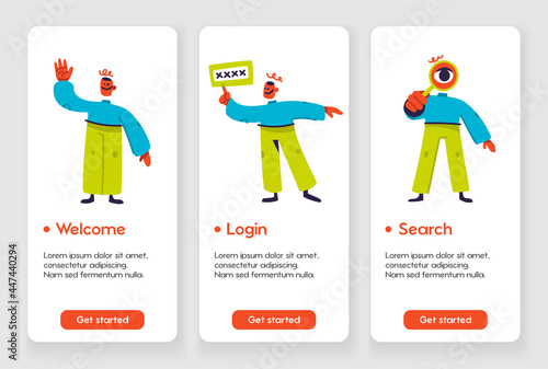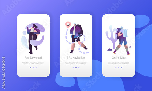 Fitness, Powerlifting a jóga mobilní aplikace onboarding obrazovky. Menu banner vektorová šablona pro vývoj webových stránek a aplikací. Služby Fitness tělocvičny, sportovní aktivity, zdravý životní styl.
