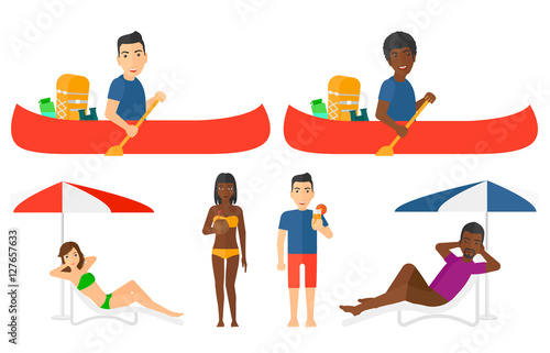 Mladé dámy dělají postupy odstraňování chloupků, vektorové ploché ilustrace izolovaných na bílém pozadí. Voskování, holicí strojek, depilační krém, laserové typy odstraňování chloupků. Koncept péče o pleť a krásu.