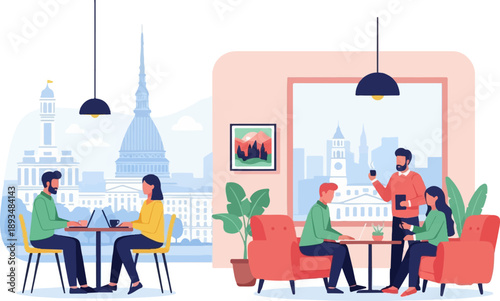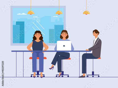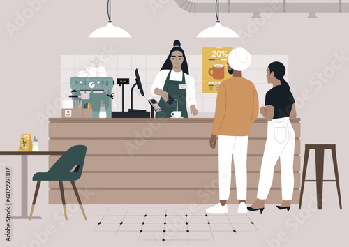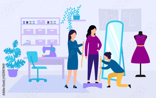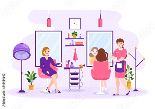 Interiér kadeřnictví. Profesionální kadeřnice a stylistka dělá její klient ženské vlasy, ploché vektorové ilustrace. Kosmetický Salon, kadeřnický salon, služby kadeřnického studia.