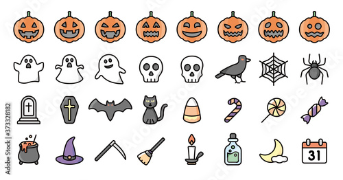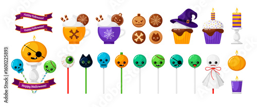 Halloween photo booth maska a příslušenství vektorové sady. Party rekvizity, kolekce slavnostních dekorací. Maska, brýle, strašidelný ústa, tradiční dýně jack-O-lucerna izolovaných na bílém pozadí