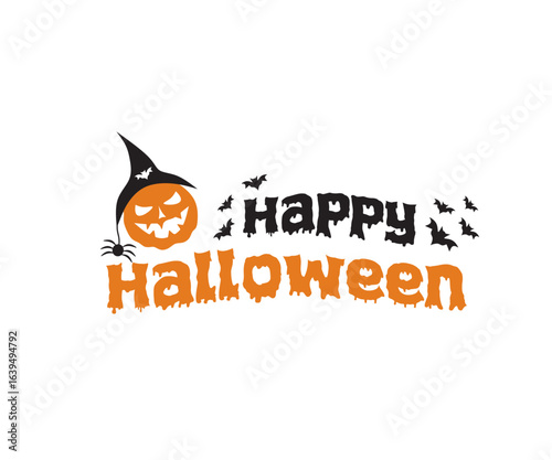 Šablona vstupní stránky Halloween. Koncept designu vektorového plochého stylu pro vývoj webových stránek Halloween a mobilních stránek. Dýně, cukr lebka maska, oči, netopýři, svíčky, cukroví kuří oka a čarodějnice klobouk.