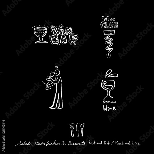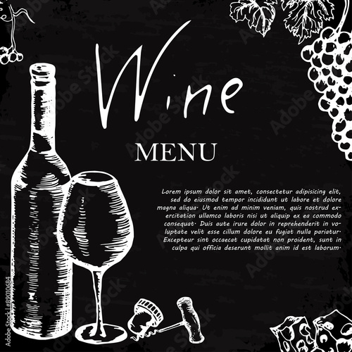 Ručně tažené svařené víno vektorové plakát. Černobílá skica se sklenkou na víno. Menu karty design šablony v retro vintage stylu na černém pozadí.