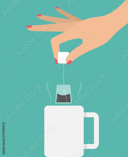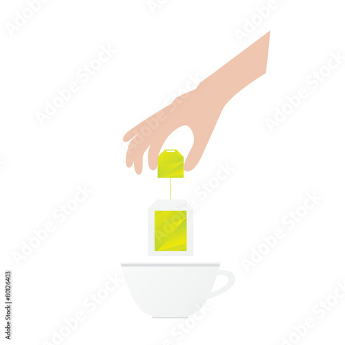 Ruce drží čaj-sáček vařit zelené aroma nápoj vektorové ikony izolovaných na bílém pozadí