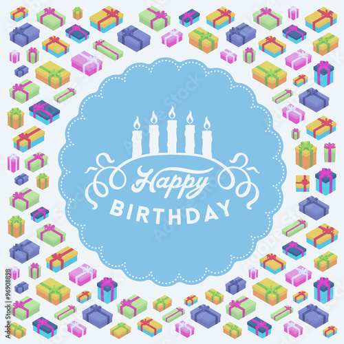 Narozeninový dort se svíčkami, balónky, dárkovými krabičkami a holubicemi, vektorové ilustrace v moderním řemeslném stylu paper art. Všechno nejlepší k narozeninám složení pro přání, pozvání, plakát, banner atd.
