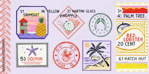 Všechno nejlepší k narozeninám blahopřání čtvercové šablony s krásným slavnostním designem zdobený dort a sladkosti, balónky, zabalené překvapení dárkové krabičky set. Typografie blahopřání pohlednice vektorové ilustrace