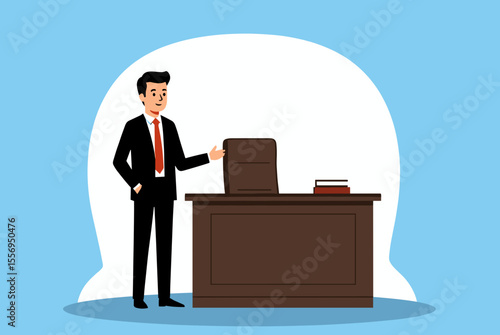 Šťastný podnikatel s myšlenkou bubliny sedí na židli s nohama na stole, ploché vektorové ilustrace. Kancelářský muž odpočívá a sní o něčem.