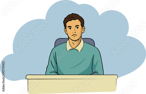 Šťastný podnikatel s myšlenkou bubliny sedí na židli s nohama na stole, ploché vektorové ilustrace. Kancelářský muž odpočívá a sní o něčem.