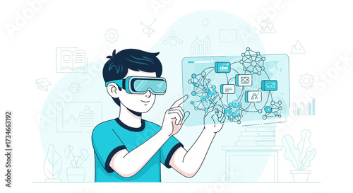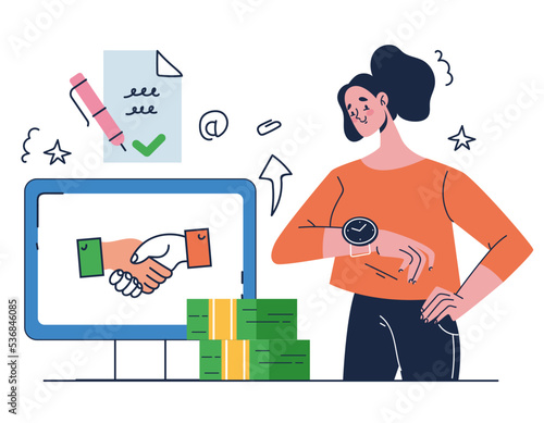 Šťastný podnikatel, šampion, vítěz obchodní soutěže holding trophy award cup, ploché vektorové ilustrace. Profesní kariérní růst, finanční úspěch, vedení, oslava vítězství.