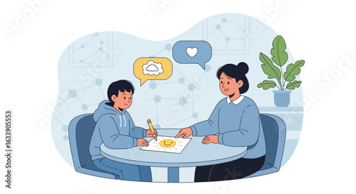 Šťastné děti si hrají s robotickou hračkou nebo programují inteligentního robota, ploché vektorové ilustrace. Škola robotiky, kid engineering club, robotická třída.