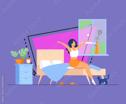 Šťastný pár slaví Kolaudační párty společně po přestěhování do nového domova, ploché vektorové ilustrace. Interiér obývacího pokoje s novým nábytkem.