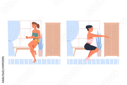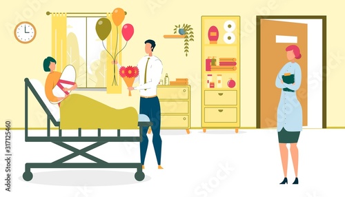 Šťastný pár slaví Kolaudační párty společně po přestěhování do nového domova, ploché vektorové ilustrace. Interiér obývacího pokoje s novým nábytkem.