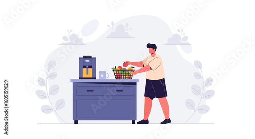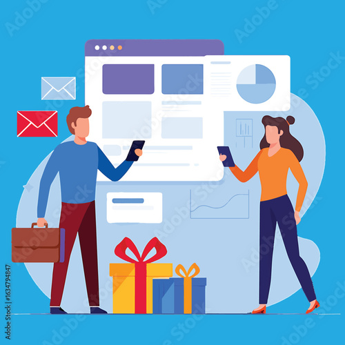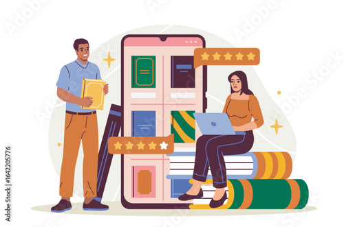Šťastný pár výběru keramických obkladů ve stavebnictví, ploché vektorové ilustrace. Domácí kutily, domácí renovace nebo přestavba.