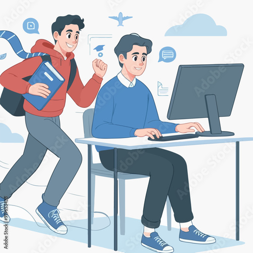 Šťastný mladý pár sedí u stolu v kavárně, se těší kávu pít a mluvit k sobě navzájem, ploché vektorové ilustrace. Kolegové, přátelé, kteří si dávají pauzu na kávu.