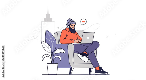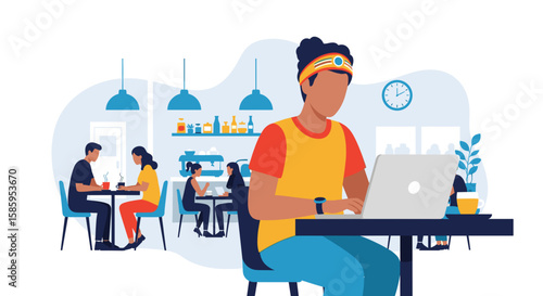 Šťastný mladý pár sedí u stolu v kavárně, se těší kávu pít a mluvit k sobě navzájem, ploché vektorové ilustrace. Kolegové, přátelé, kteří si dávají pauzu na kávu.
