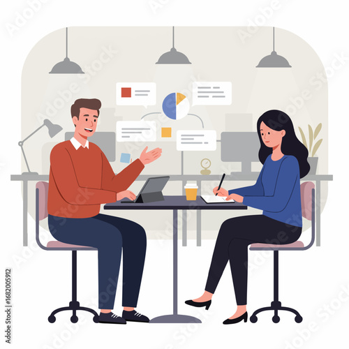 Šťastný pár jíst hamburger, párek v rohlíku, hranolky, zmrzlina, pití soda sedí u stolu doma, ploché vektorové ilustrace. Služba rychlého občerstvení online.