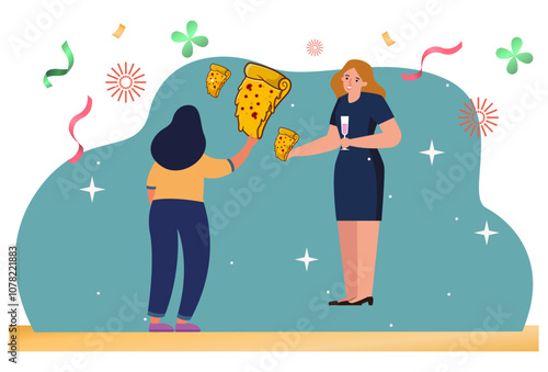 Šťastný pár jíst s sebou pizzu sedí na pohovce doma, ploché vektorové ilustrace. Rozvoz rychlého občerstvení. Ochutnávka pizzy.