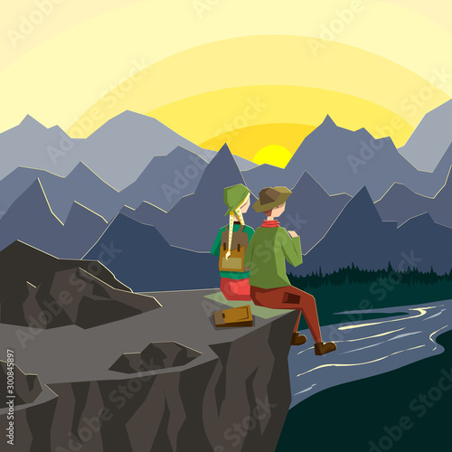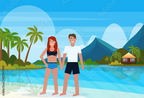 Šťastný milující Mladý pár se těší odpočinku pití koktejl cestování výletní lodi lodi vektorové ilustrace. Dovolená dovolená a turistický výlet koncept