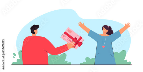 Šťastný pár pozdrav navzájem s otevřenou náručí, ploché vektorové ilustrace. Šťastná žena setkání její manžel vrací domů ze služební cesty. Návrat.