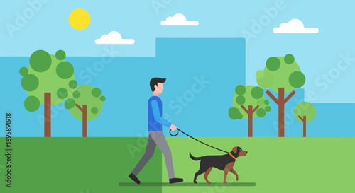Šťastný pár s bbq party v zahradě, ploché vektorové ilustrace. Mladý muž grilování bbq maso, žena hraje s pet pes sedí na židli pod deštníkem. Letní venkovní piknik, grilování.