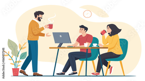 Šťastný pár odpočívá, sedí u stolu v kavárně, pije kávu a mluví k sobě, ploché vektorové ilustrace. Káva.