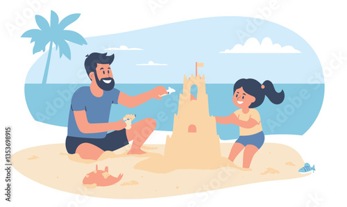 Šťastný pár při selfie na pláži, ploché vektorové ilustrace. Letní dovolená, dovolená na pláži, romantický výlet, cestování.