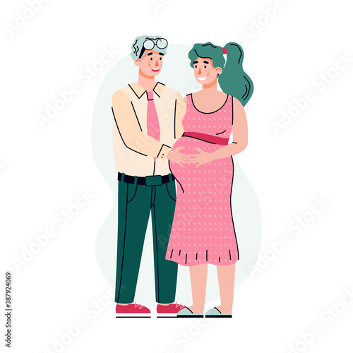 Šťastný pár chůze spolu vektorové ikony izolovaných na bílém pozadí.