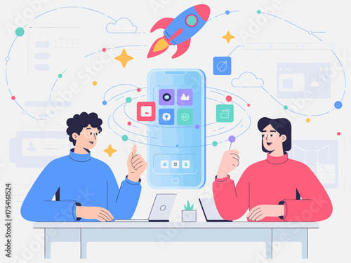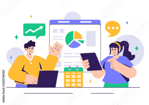 Šťastný pár s mobilními telefony a sms, chat bubliny, ploché vektorové ilustrace. Muž a žena chatují online, textové zprávy. Online komunikace.