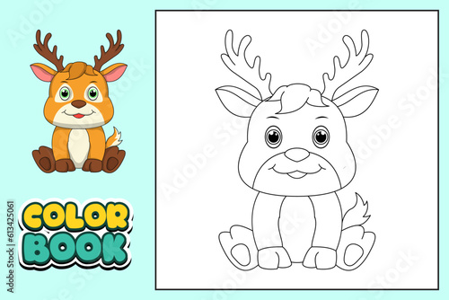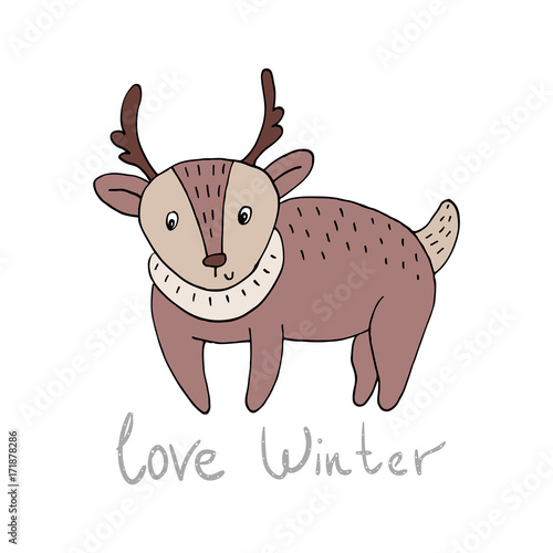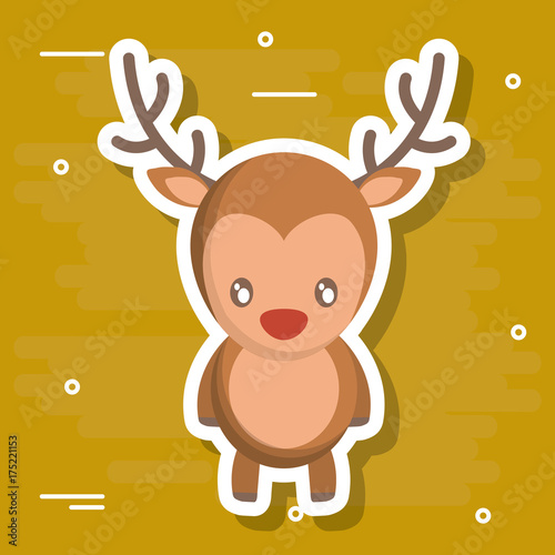 Šťastný roztomilý jelen s ptákem vektorové kreslené ikony. Cartoon lesní charakter vychutnat jarní sezónu izolovaných na bílém pozadí